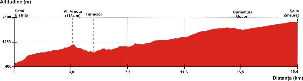- iarna : nu se recomandă decât pe porţiunea Bistriţa – Vf. Arnota