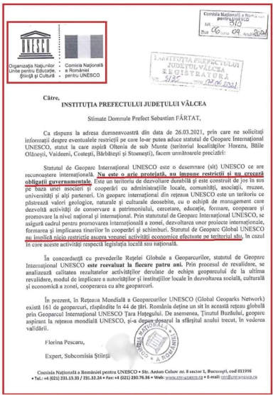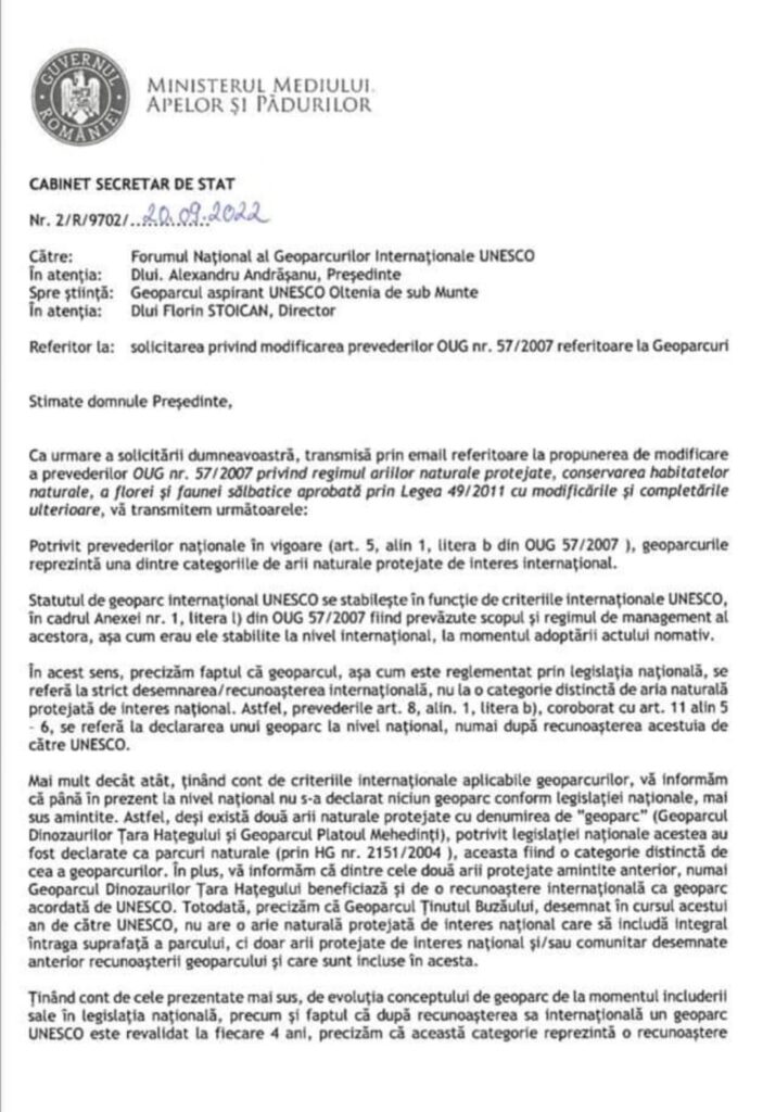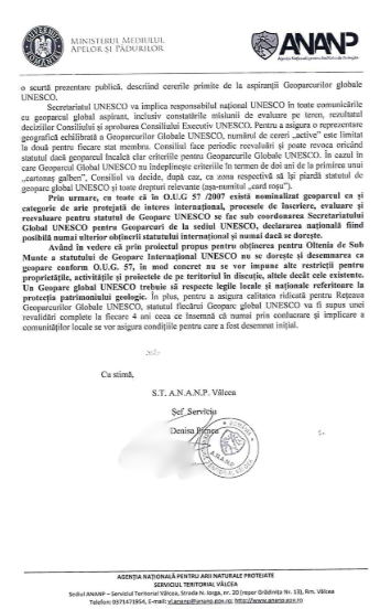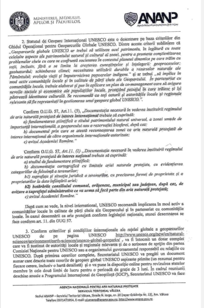 Geoparcul UNESCO NU este arie protejată