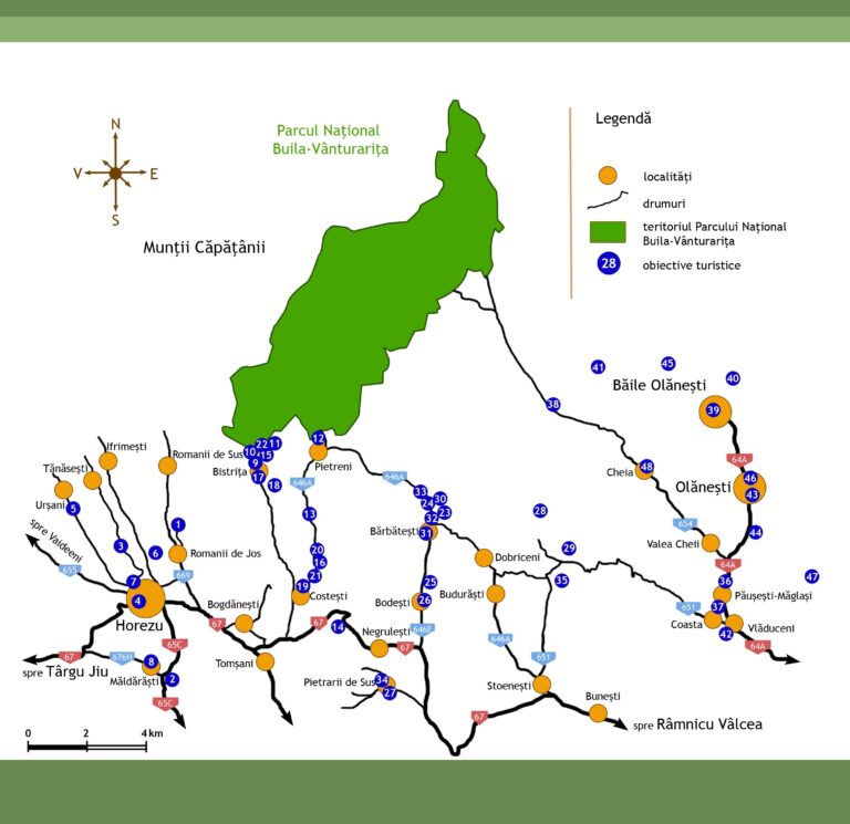 Atracțiile naturale ale zonei sunt concentrate în special în Parcul Național Buila-Vânturariţa, care este și sit Natura 2000 și în care sunt 12 rezervații naturale pentru protecția cheilor, peșterilor, pădurilor virgine, a peisajelor carstice, habitatelor și speciilor protejate.